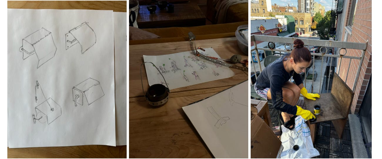A couple years earlier, in spring 2023, I spent a few months in Paris. I was sketching constantly on café napkins and in notebooks—little objects, small furniture pieces, abstractions that my mind wandered toward. Paris does that to you. The architecture alone makes you want to make things more beautiful, intentional and tactile.